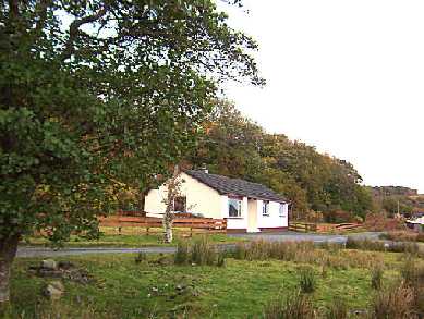 Sleeps 6. A modern bungalow set in its own spacious grounds with front and back garden. It is surrounded by ten acres of farmland. It is situated in a secluded area with splendid views of the Cuillin range and overlooking Portree and the Island of Raasay. A pleasant fifteen-minute walk takes you to the centre of Portree, passing the Co-op superstore en route. There is ample parking outside the house.