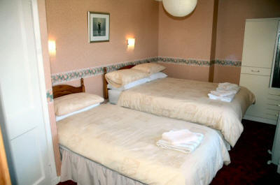 Upstairs, is a light and airy double bedroom, sleeps 2, with dressing table and wardrobe. Comfortably furnished family bedroom, sleeps 3, having a double bed, a single bed and a fitted wardrobe. The bathroom has a bath with a shower over, a wash hand basin, WC and a fan heater. The upstairs is centrally heated with convector heaters.