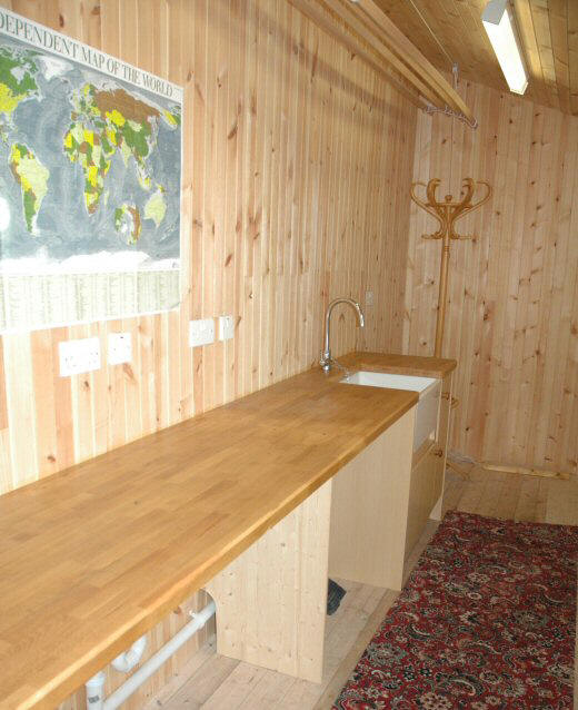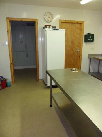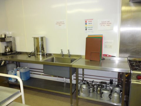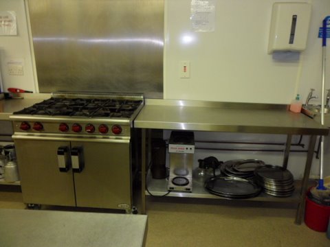 To allow us to get together in the evening for meals etc we have also hired the village hall. The “upstairs hall” and kitchen are available to us all week except on Friday when we have it from 3pm. The hall is carpeted and the kitchen is 4 years old and has a large gas range, a hot food storage cupboard and a larder fridge. It has enough chairs and crockery though no large pans or cookware. (The hall downstairs is really for badminton etc)
