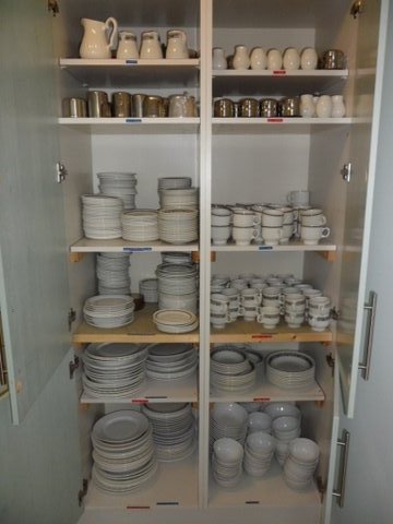 Dinner Plates 137 Side Plates 189 Soup Bowls 104 Gravy Boats 34 Sugar Bowls 8 Tea cups 146 Saucers 170 Water Jugs 20 Dessert Plates 130 |