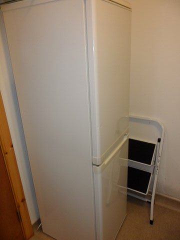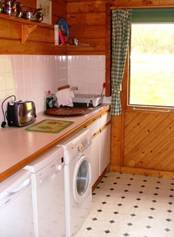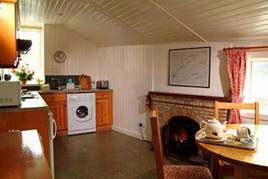 Ground Floor: Lobby for outdoor clothing and footwear. Lounge with TV, DVD player and open fireplace. Kitchen with fridge freezer, electric cooker with oven, grill and hot plates. small microwave oven, toaster. Area off the kitchen which houses a washing machine & clothes airer.