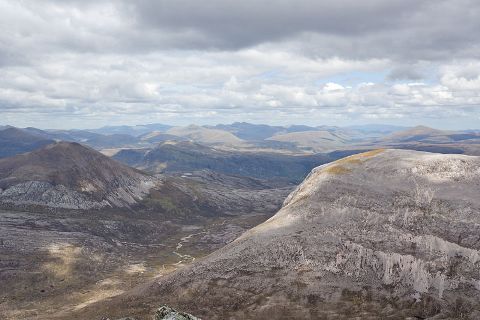 Meall a' Ghiuthais, a Corbett with good views of Ben Eighe lies just to the north of the Corbett Ruath Stac Beag on the north-east end of Ben Eighe. The two should give tremendous mountain round especially-so for Corbett baggers (there are none of course)
