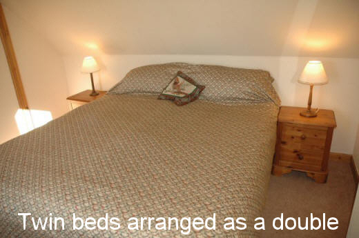 First Floor: Double bedroom with king-sized bed. Twin room with large single beds. Small box-room with a single bed..