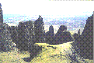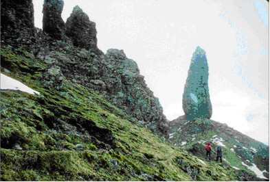 The Quirang gives a fantasy walk on rabbit mown paths amongst weird formations associated with an ancient landslip architecture  Nearer to Portree you can also walk up to  the prominent Stor Rock or visit the fossil beach well below it.