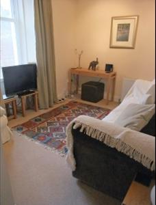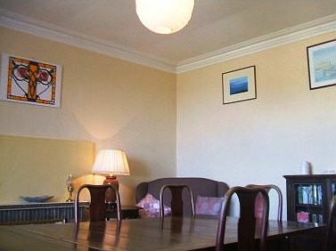 The living room has sea views from bay windows, with several couches, chairs, and rocking chairs to arrange as you like around the open fire, or to watch the TV/DVD. Kindling and a generous coal allowance are provided. There is a CD/radio/iPod dock system and WiFi from Easter 2013.