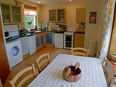 The generous kitchen is fully equipped, including an original Belfast sink, Food processor, Fridge/freezer, Microwave, Washing machine, walk-in airing cupboard with heat-lamp, and good storage space. The tables will seat 10 for informal meals.
