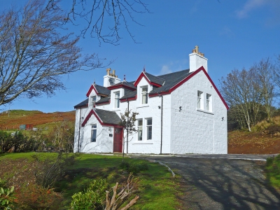 Nestling against the side of a small heather-clad hillock, this lovely detached house enjoys wonderful views across open countryside and towards the crystal clear waters of Loch Pooltiel, Dunvegan Head, and on a clear day, the Outer Hebrides.