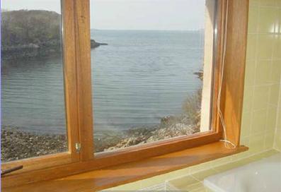 Bathroom - bath/shower over, bidet, large window with sea view.