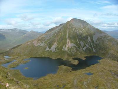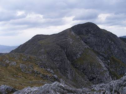 Binnein Mor – one of the eastern Mamores, looking up the south ridge, approached from Kinlochleven. |