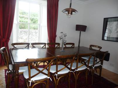 Special features of the house are the billiard room with full sized snooker table together with the indoor swimming pool (5m x 10m) together with sauna. The house is large enough to also accommodate a games room with full sized table tennis table The large dining room provides seating for twenty two guests and is perfect for those special occasions. The house is suitable for those with limited mobility as there is a twin bedroom and bathroom on the ground floor. The house retains its character in being the former seat of the MacLeans and there are many pictures and also a family tree in the study of the house. The house is furnished to match its character and proves to be popular with those who visit it though it is not a luxurious house but rather provides clean, comfortable but modestly furnished and spacious rooms.