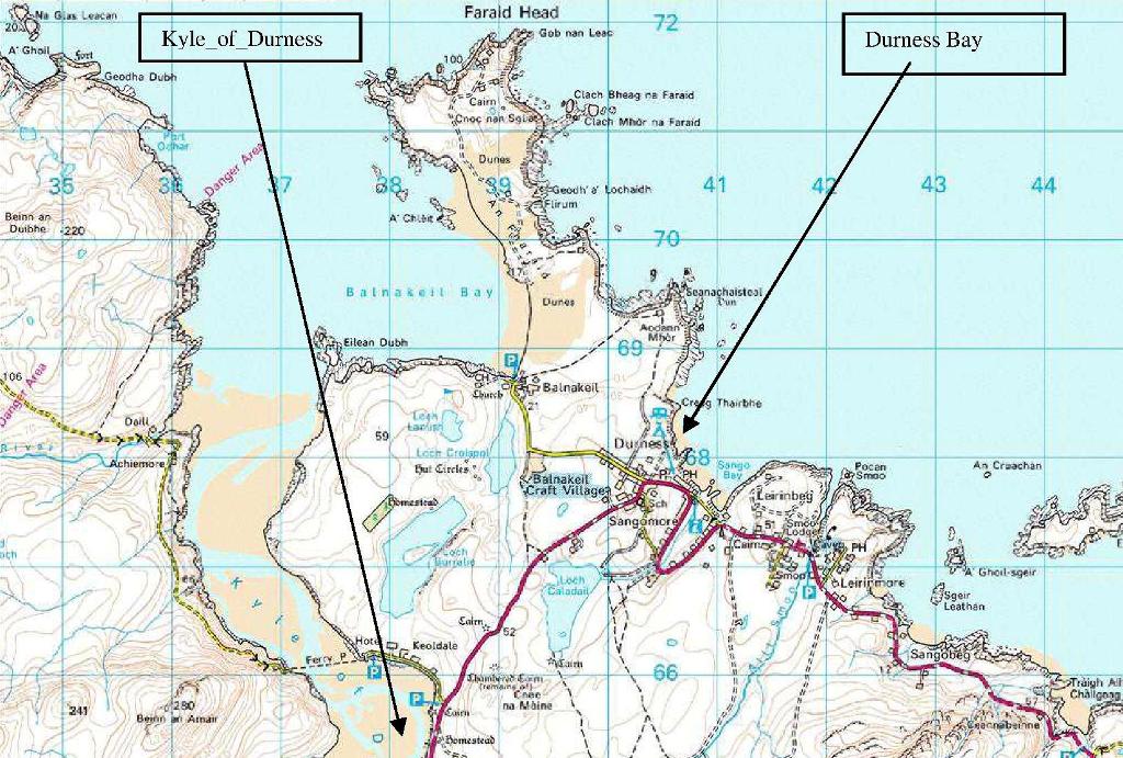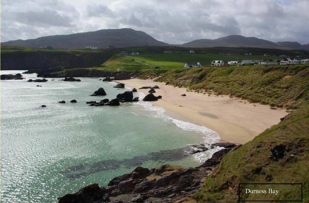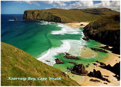 Kervaig Bay (3½ miles from Cape Wrath – one way) The walk to Kervaig Bay should be done as part of the bus/ferry trip to Cape Wrath (the driver will drop off or collect en-route). The beach (East of Cape Wrath) is not visible from the bus |