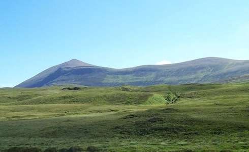 Cranstackie – seen here from the east. The mountain is (like many in the area) covered in fragmented quartzite. |