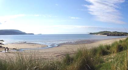 Sandwood Bay We have visited this beauty spot several times over the years. It is about 4 miles on tracks crossing moorland from Blairmore on the road beyond Kinlochbervie.