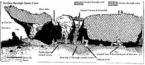 The ferry will be running from Good Friday until Tuesday though this depends on the weather and the need to avoid being shot/bombed. The bus meets the ferry taking a leisurely 1 hour to reach Cape Wrath where there is a café. The same bus returns after 50 minutes or stay for a later one. (see the walks above) | A short walk from Durness and set into limestone cliffs, Smoo Cave is quite large - 200 feet long, 130 feet wide, and 50 feet high at the entrance. Entry is free though boat trips into the inner cave cost £4 and operate between 11am and 4pm (weather dependant). |