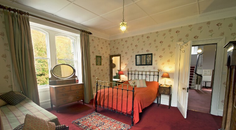 The big drawing room is lovely with its gold cornicing and large bay windows and open fire and the main hall with its beautiful staircase wood panelling and stags head echo the Victorian splendour of the heritage. The hall is so large it can act as a second sitting room also with a big welcoming open fire.