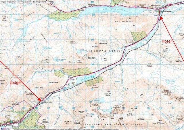 This year sees us return Glen Carron. I made protracted but failed efforts to book what seemed to be a an ideal big house close to Lochcarron and a subsequent attempt to eat together at the village hall found it too busy to accomodate us. So I returned to Legowan Lodge Hotel at Achnasheen where they again kindly allowed me to book the whole Hotel self catering. Taking this with lodges on the Glen Carron Estate eight miles down the Glen means we have a lot of bed-space and at the hotel we can all eat and relax together.
