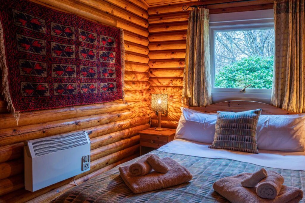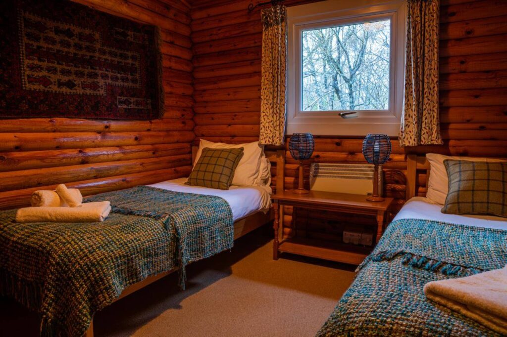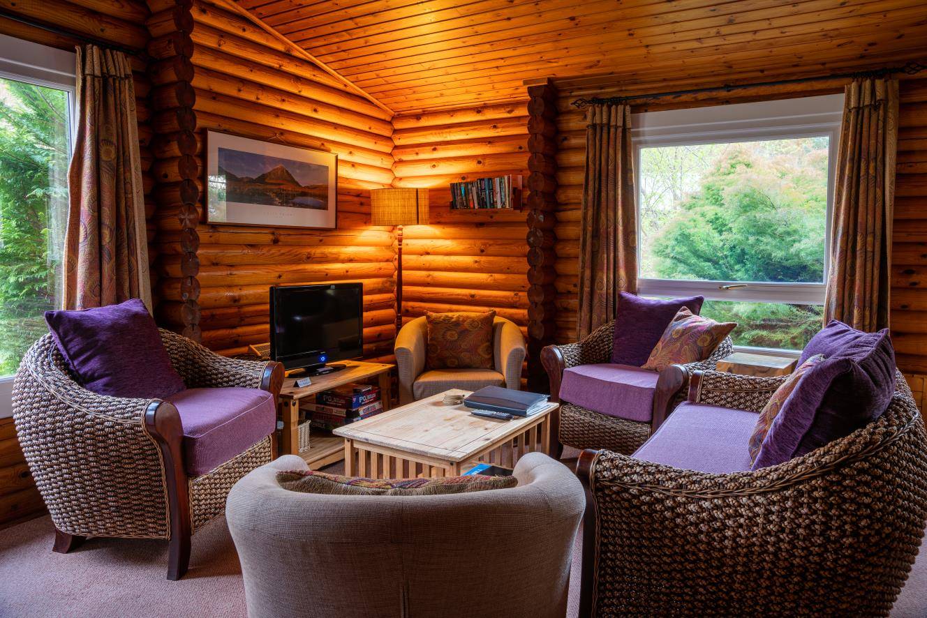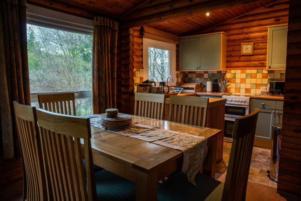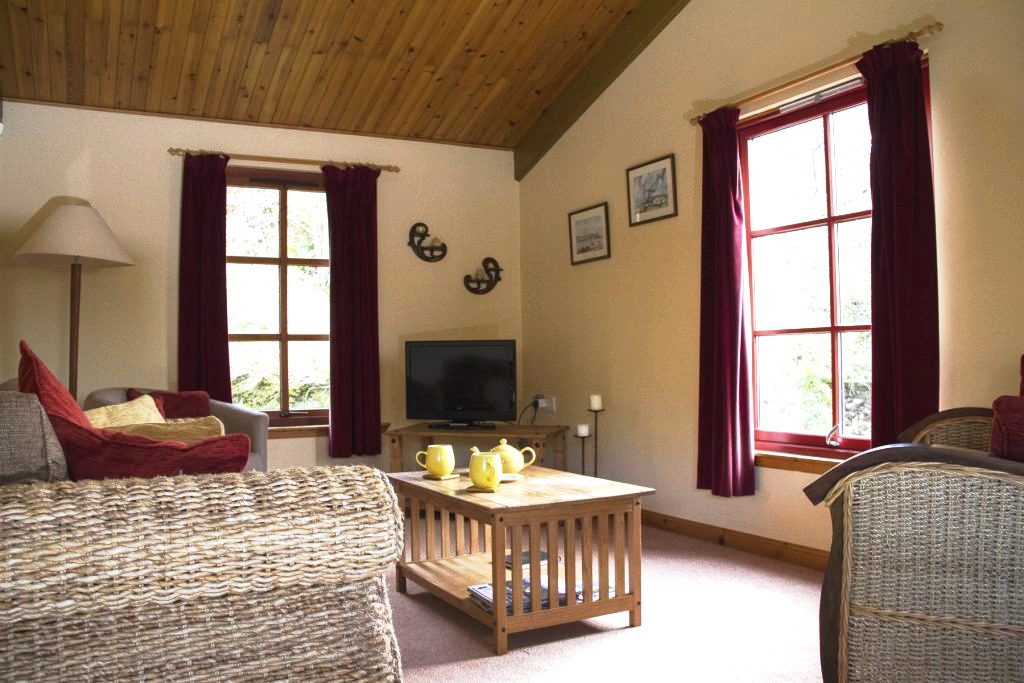 There are nine Lodges of which I have booked six on a woodland site with some good local walking. They all have warm electric heating, well equipped kitchens (3 of our 6 have dishwashers), a TV with integrated DVD Player and free WIFI. They are all fully carpeted and bedlinen and towels are provided. The Lodges are set in a little valley of three acres of open grass and trees. We are bordered on two sides by a small burn (river) and you enter the site across a little bridge. Each Lodge has their own rustic garden seating and barbeque. They look good quality and reports are good.