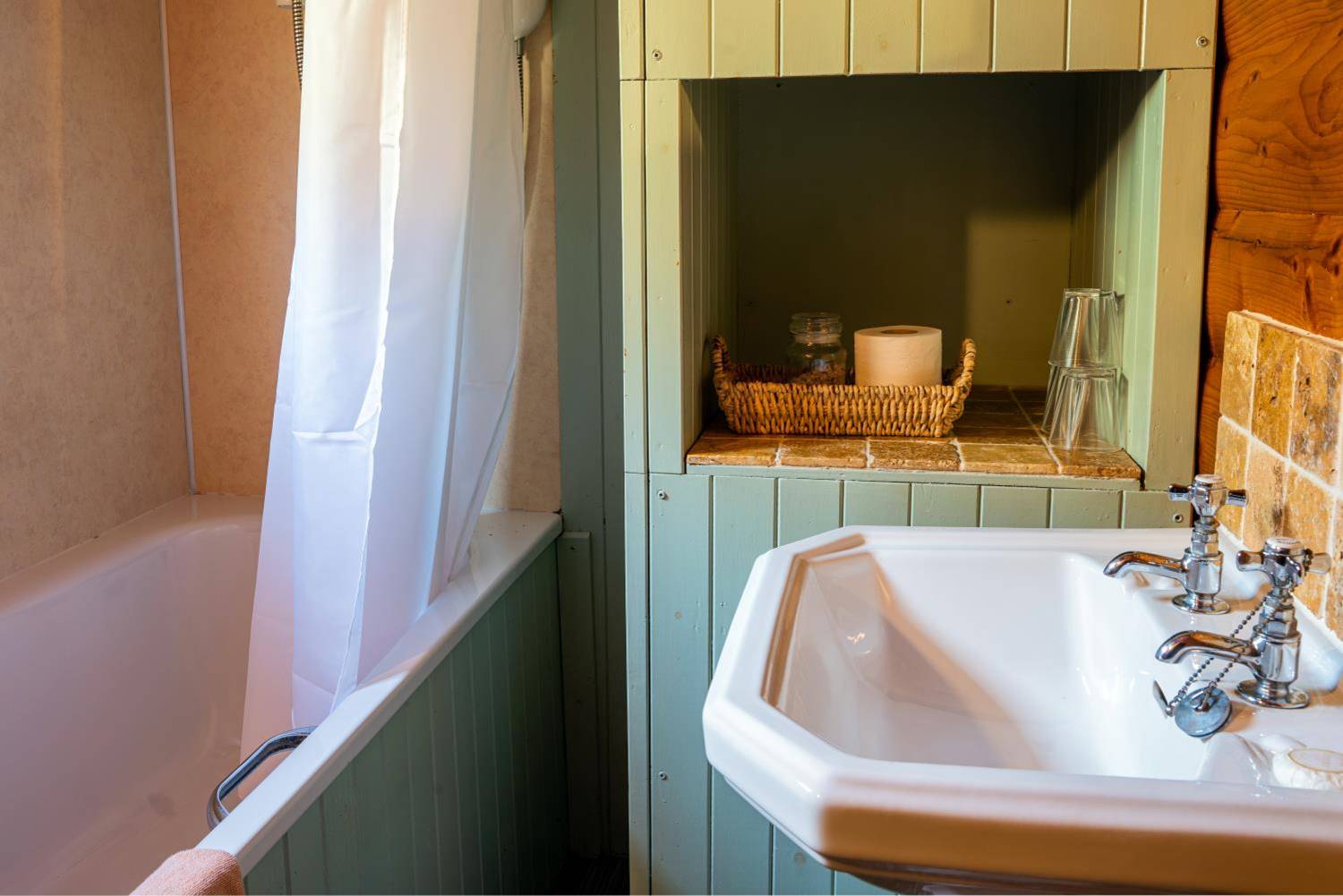 ![]() bathroom has a walk in shower and a 3/4 length bath |