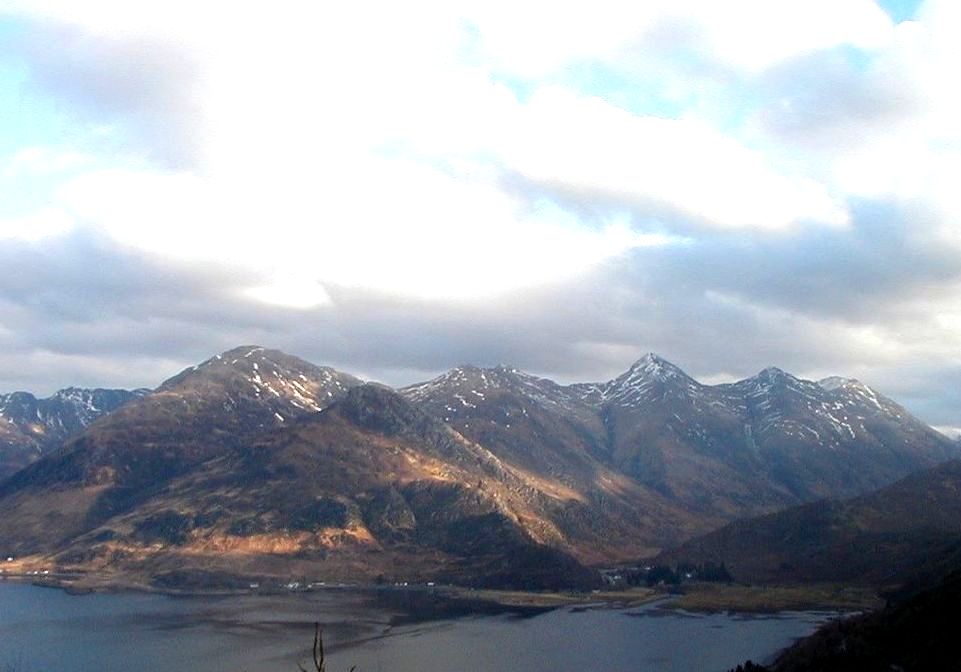 Five Sisters and the Battle of Kintail Many of us have enjoyed this ridge on the north of Glen Shiel many times and perhaps some may walk it again. The 4th top (counting L-R) is Sgùrr na Ciste Duibhe "Peak of the Black Chest". and hidden behind is a subsidiary peak Sgùrr nan Spàinteach "Peak of the Spaniards". This takes its name from 200 Spaniards on the side of Jacobite rebels, who retreated over the peak during defeat in the battle of Glenshiel. The last close engagement of British and foreign troops on mainland British soil. The remains of a stone dyke enclosure for the Jacobite's munitions is still visible. |