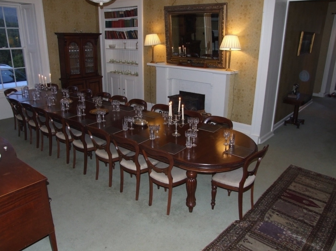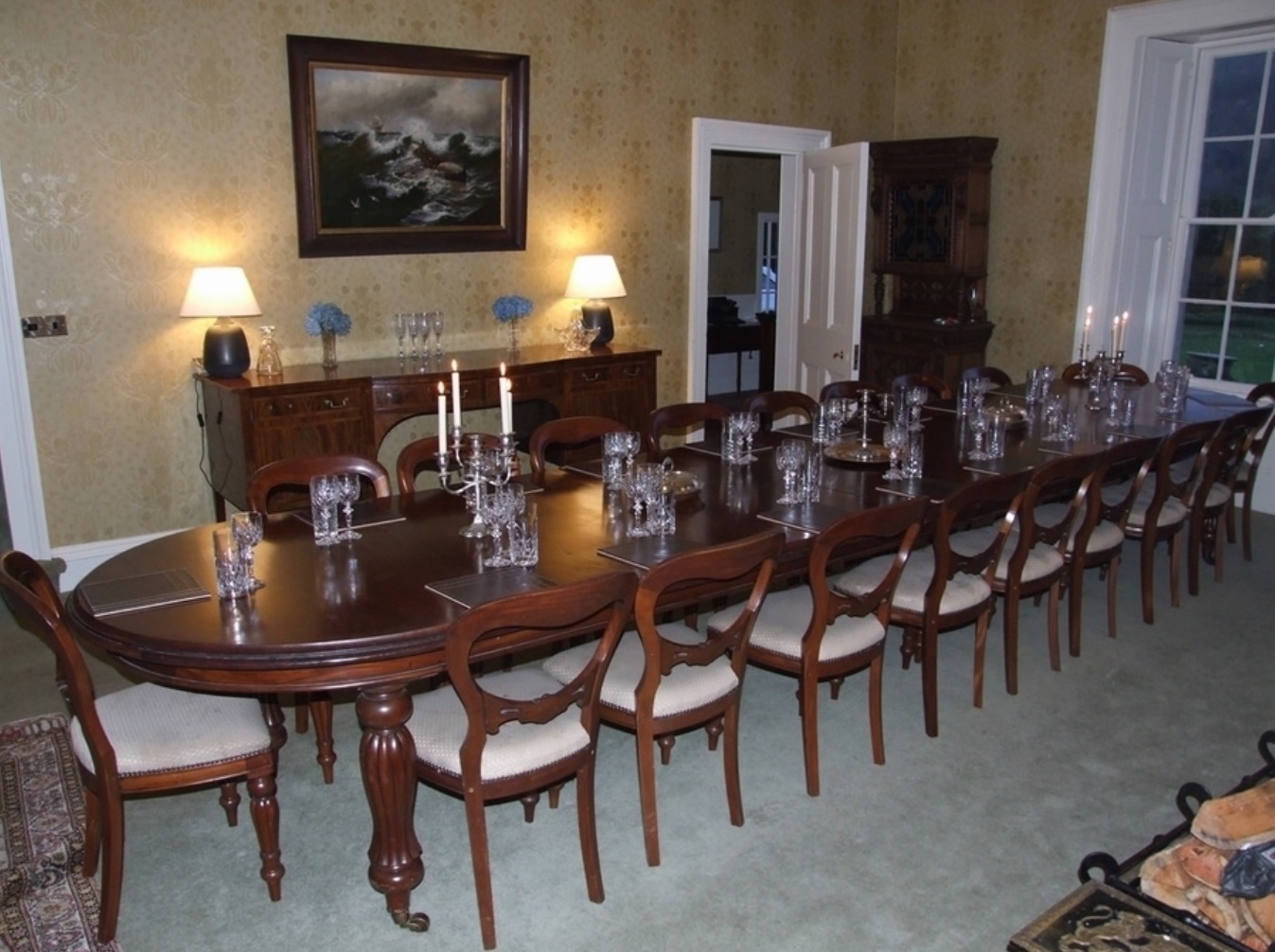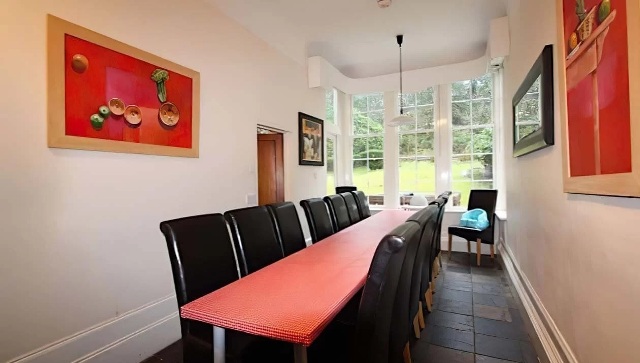 The Dining Hall + Breakfast room at Ormidale house will together seat 40 so we will all be able eat there..