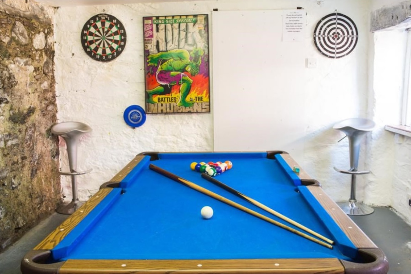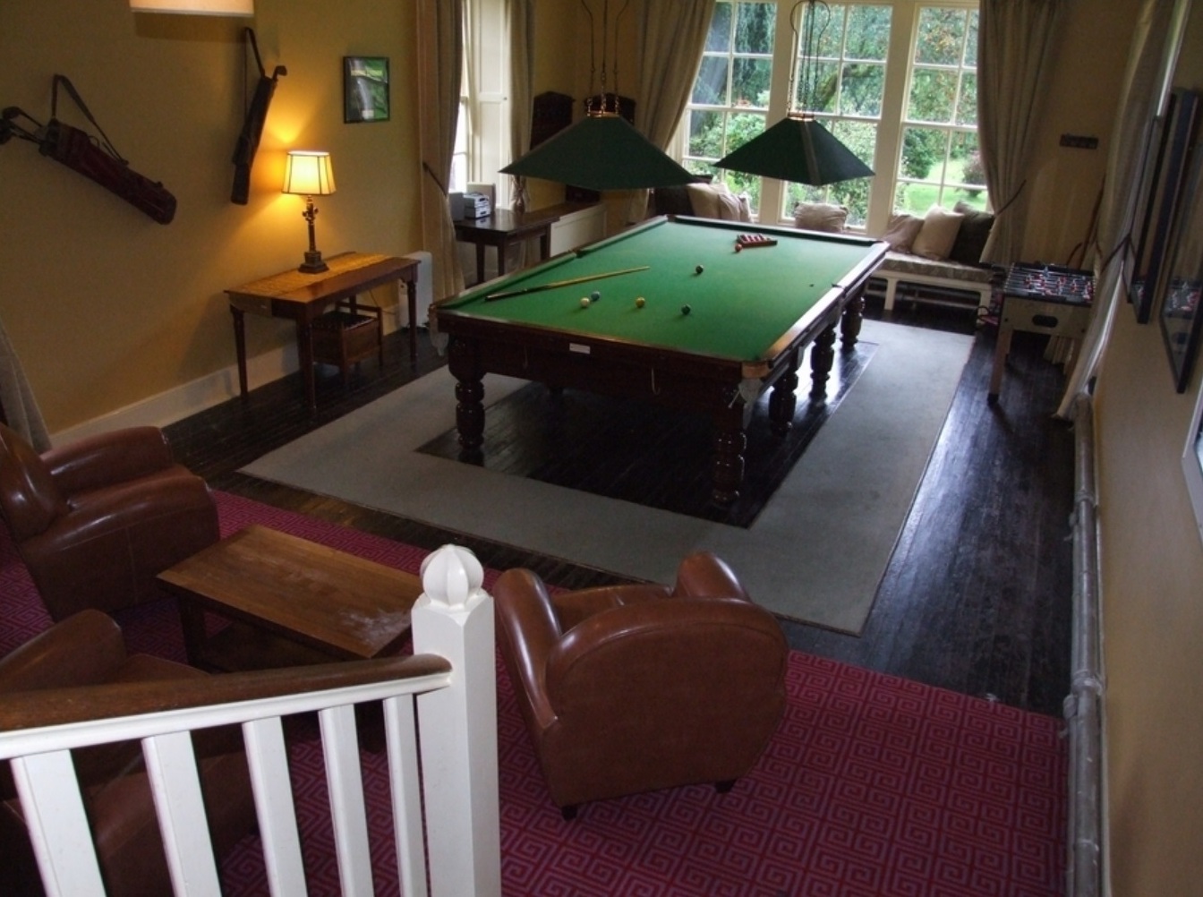 Breakfast Room Drawing Room with Open Fire "Massive" Kitchen with 4 oven Aga Utility Room Billiard Room with Full-Size Snooker Table and table football TV room, Full Sky TV Games / Play room withTV, Ping Pong Table, Dartboard Outside - On the terrace a 7 seater Hot tub ... £150 extra if we want it. Tennis Court 12 Bikes 6 sets golf clubs |