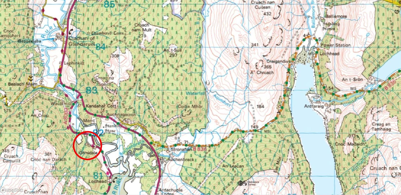 From Ormidale, turn right at the main road at Strachur & almost