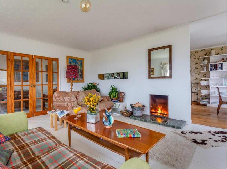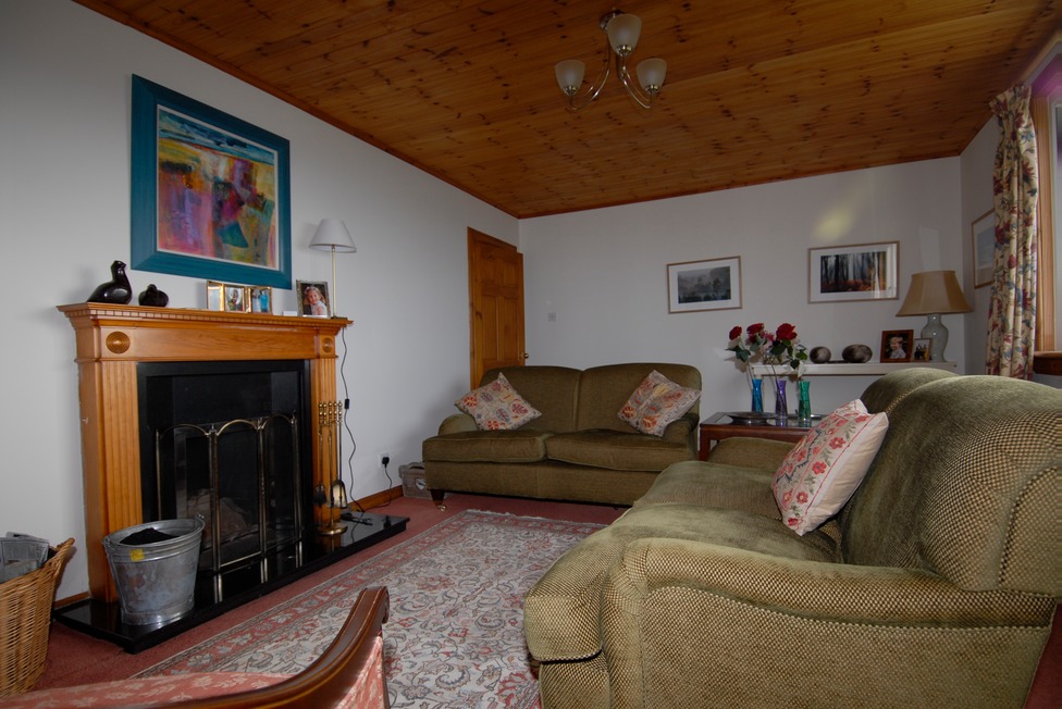 with white floorboards throughout, reindeer and sheepskin rugs and an