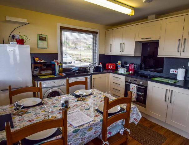 Kitchen (through with dining room) with electric oven and hob, fridge/freezer, microwave and washing machine. Utility area with freezer. Bedrooms 1 Superking 1 Twin Bathroom with shower over the bath and WC |