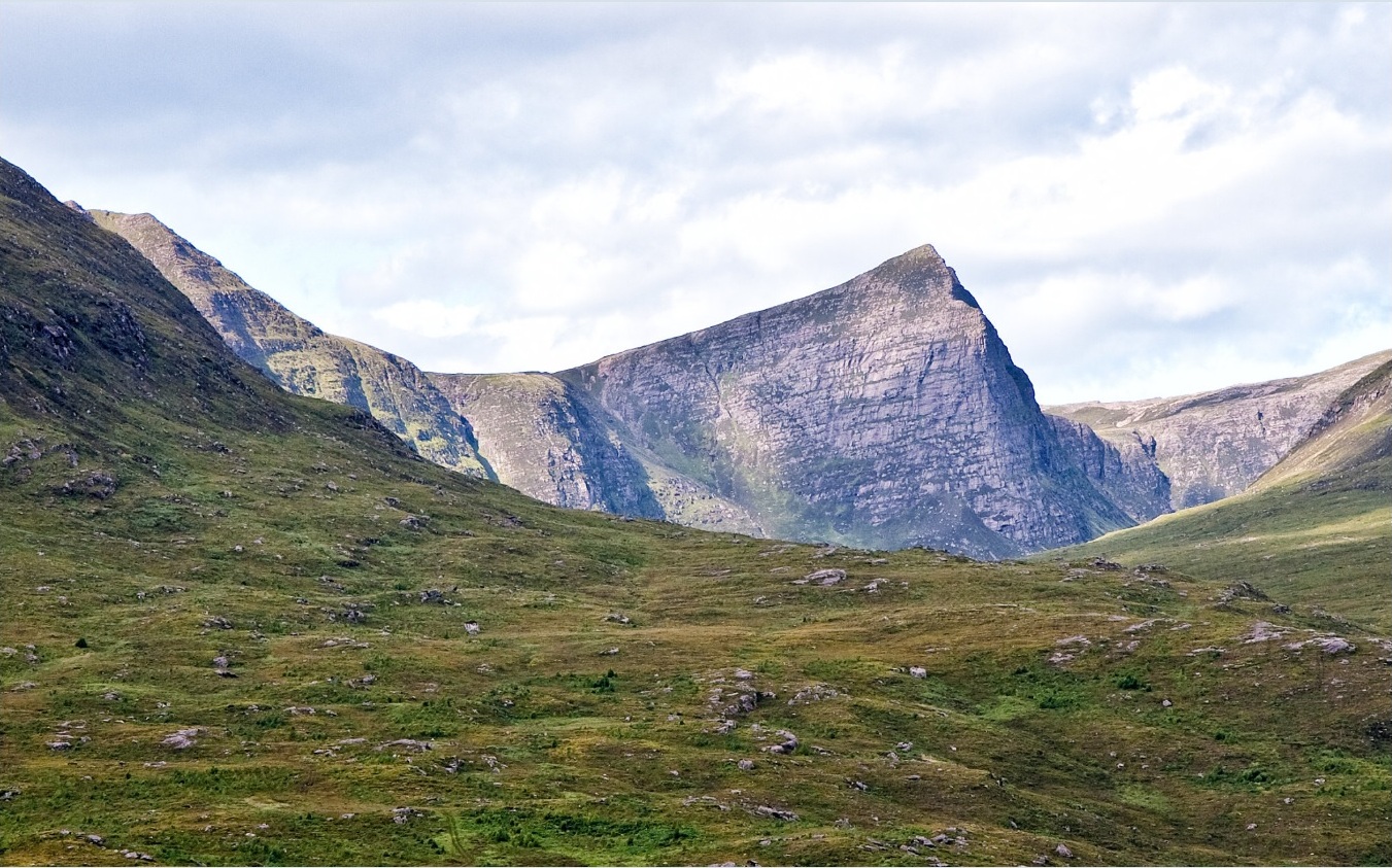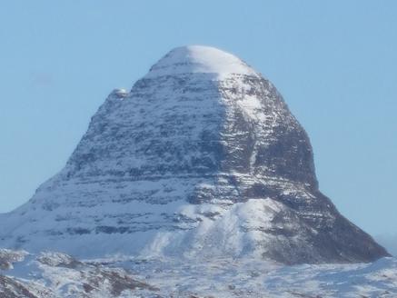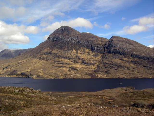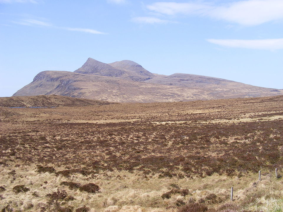769 m (2,523 ft) Seen from the south rising above the road to Inverpolly. |