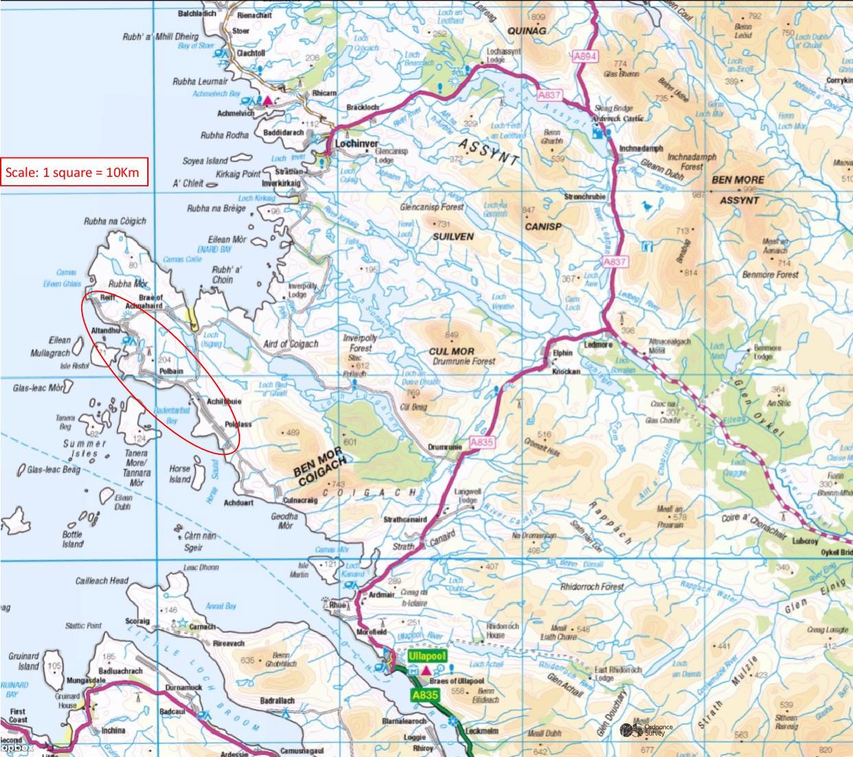 Of interest to some may be the "Geotrail" leaflet which takes you on a series of geologically focused (very!) excursions around our peninsula. I will try to get hold of a few copies beforehand. They are currently out of stock on the web site but we may be able to purchase them locally (don't bother trying to print one without some reformatting or an A2 printer - the text is unreadable). Cycle hire The nearest I can find is Ullapool Bike Hire who offer mountain and electric bikes + a drop-off or pick up service. Local routes around Achiltibuiecan be hilly! |